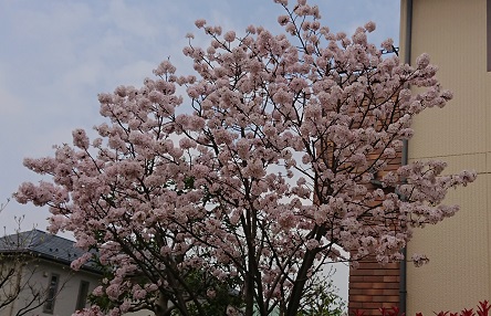 おなじみ!?山川家の桜も満開でした。例年はソメイヨシノが散ったころに咲き始めるのですが、今年はほぼ同じくらいの開花でした。