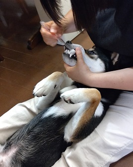 今では、歯ブラシを持って呼ぶとゴロリと横になって自分から準備をしてくれます